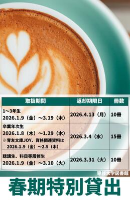 学部学生を対象に春期特別貸出を行いますので、お知らせいたします。